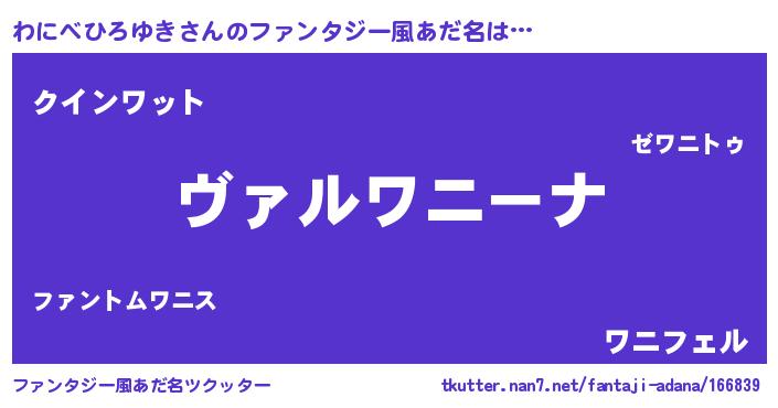 | 意味不明あだ名 | 『住所不定無職わにべひろゆき(5歳)』 |