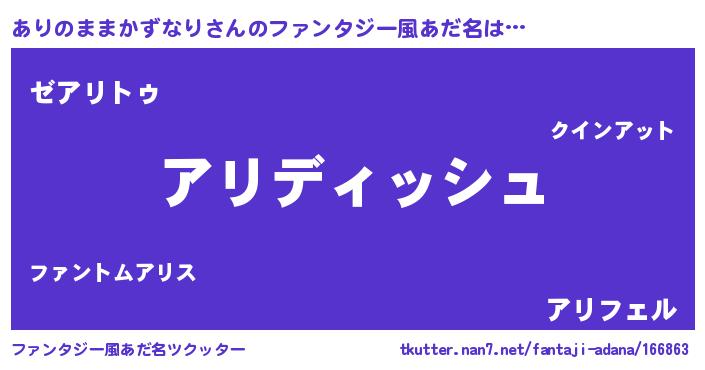 | ヒーロー風カッコイイあだ名 | 『ネオアリノママカズナリ』 |