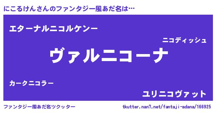 | 男性向けラノベタイトル風あだ名 | 『魔弾の王とにこるけん』 |