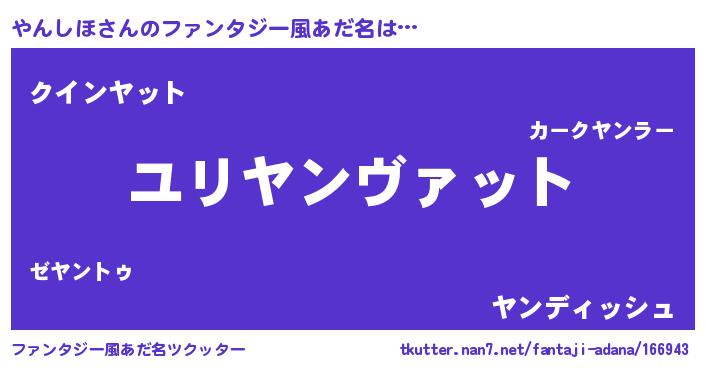 | 料理風あだ名 | 『やんしほごはん』 |
