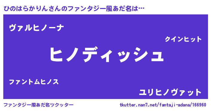 | ヘコむあだ名 | 『ひのはらかりん(小並感)』『ひのぷりん』 |