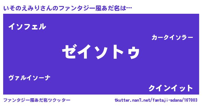 | 女子向けラノベタイトル風あだ名 | 『いそのえみりアンティーク』 |