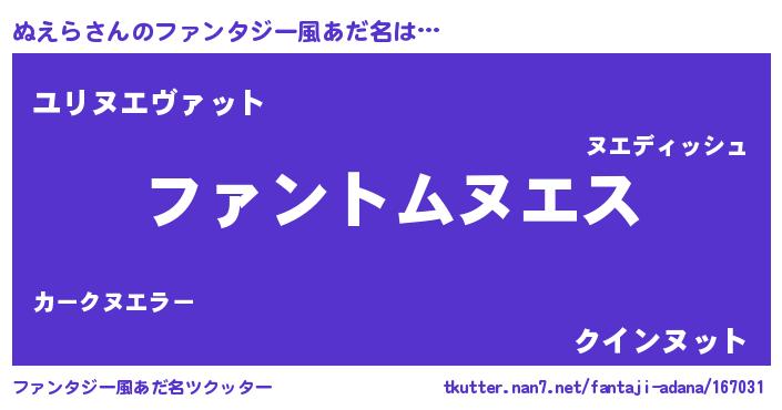 | 女子向けラノベタイトル風あだ名 | 『ぬえら様がみてる』 |