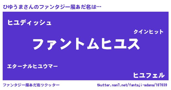 | 男性向けラノベタイトル風あだ名 | 『ひゆうまの嫁は女の子じゃないと思った?』 |