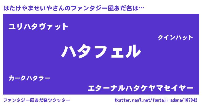 | 胡散臭い通販商品みたいなあだ名 | 『モテモテ間違いなし水晶球…その名も「はたけやませいや」』 |