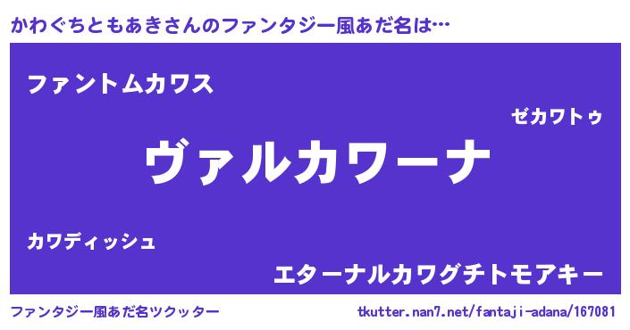 | ポケモン風あだ名 | 『カーワイ』『ヒカワグチトモアキ』 |