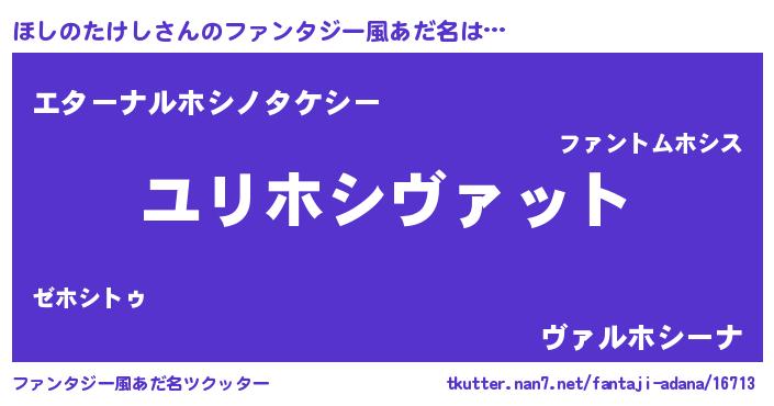| 男性向けラノベタイトル風あだ名 | 『ホシノタケシスレイヤー』 |