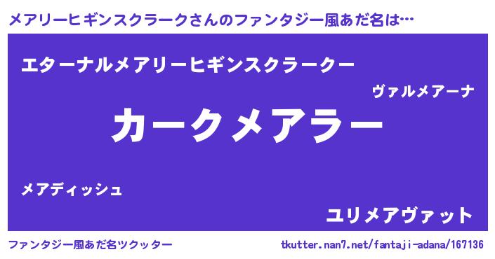 メアリーヒギンスクラークさんのファンタジー風あだ名をツクッター!