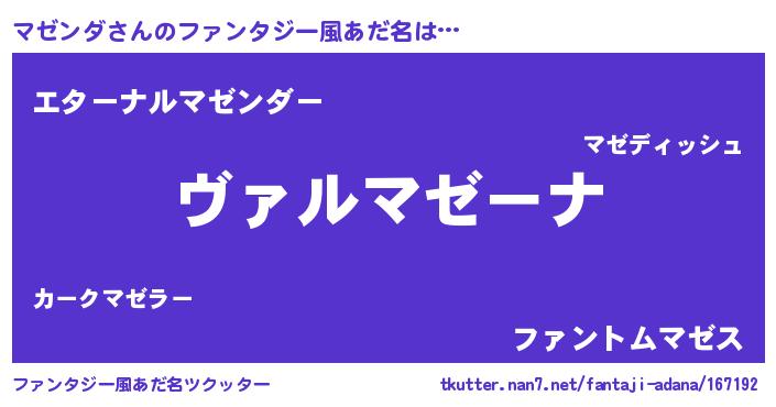 | ヒーロー風カッコイイあだ名 | 『仮面マゼダー』『ウルトラマゼンダマン』 |