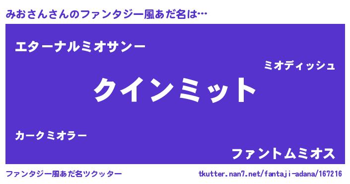 | ヒーロー風カッコイイあだ名 | 『友情の使者みおさん』『幻影騎士ミオ』 |