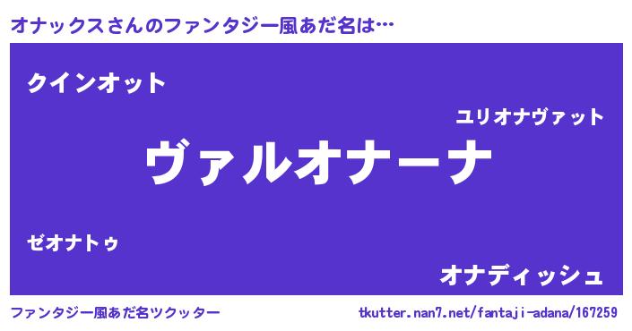 | 男性向けラノベタイトル風あだ名 | 『はたらくオナックスさま!』 |