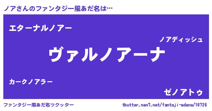 | 男性向けラノベタイトル風あだ名 | 『この素晴らしい世界にノアを!』 |