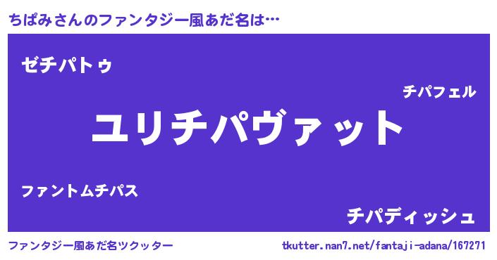 | 可愛いあだ名 | 『ちぱぷりん』『ちぱうちぇる』 |
