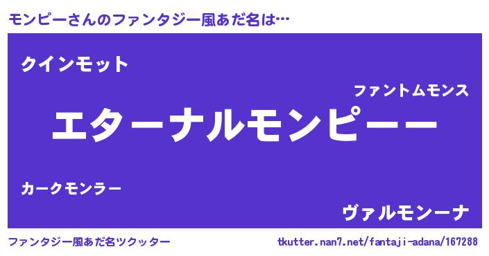 | 恥ずかしいあだ名 | 『モンっちょ』『ボンバーヘッドモン』 |