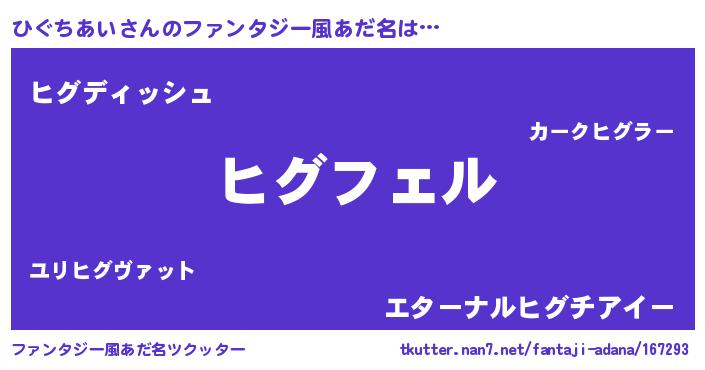 ひぐちあいさんのファンタジー風あだ名をツクッター!
