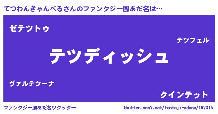 | ヘコむあだ名 | 『てつわんきゃんべる(苦笑)』『てつにー』 |