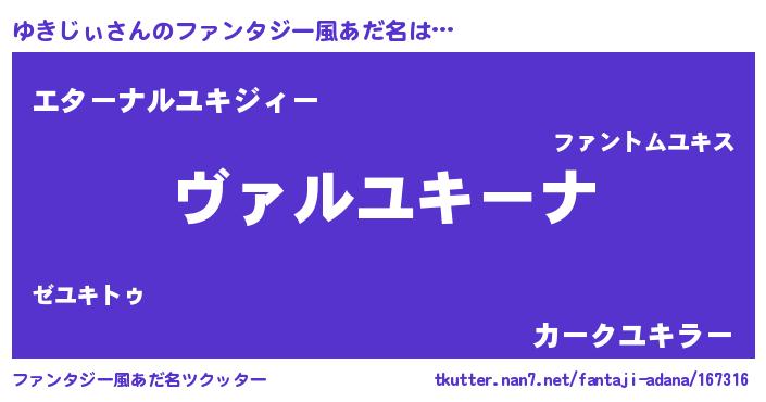 | 女子向けラノベタイトル風あだ名 | 『乙女ゲームの破滅フラグしかない悪役ゆきじぃに転生してしまった…』 |