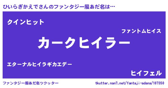 | ヒーロー風カッコイイあだ名 | 『天空の使者ひいらぎかえで』 |