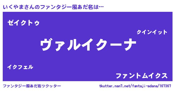 | 男性向けラノベタイトル風あだ名 | 『魔弾の王といくやま』 |
