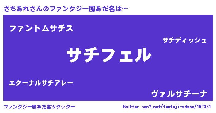 | 自動車の名前っぽいあだ名 | 『サチティマ』『ランサチギーニ』 |