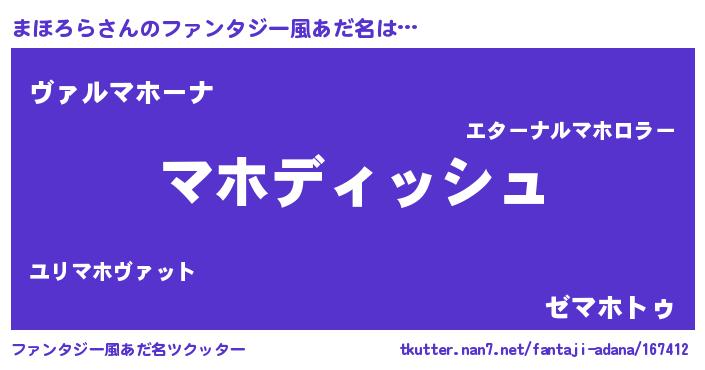 | 意味不明あだ名 | 『永久保存まほろら』『自称まほろら』 |
