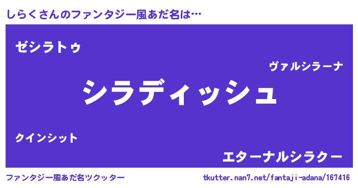 | 欧米人風あだ名 | 『アンジェラ・しらく』 |