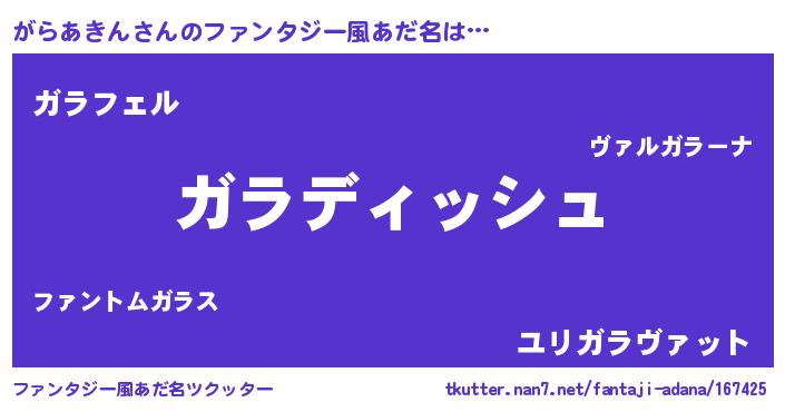 | ポケモン風あだ名 | 『ガラゴンZ』『ゼニガラ』『ガーライ』 |