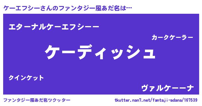 | 男性向けラノベタイトル風あだ名 | 『ケーエフシーという概念が存在しない退屈な世界 』 |