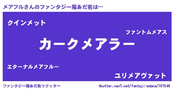 | 男性向けラノベタイトル風あだ名 | 『緋弾のメアフル』 |