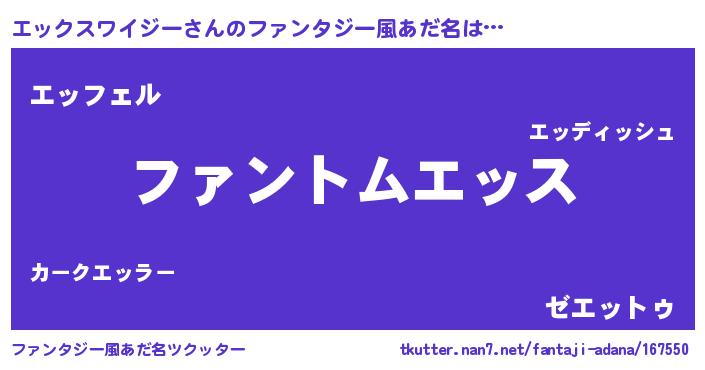 | 男性向けラノベタイトル風あだ名 | 『エックスワイジーの嫁は女の子じゃないと思った?』 |
