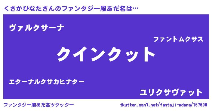 | ヒーロー風カッコイイあだ名 | 『天空の使者くさかひなた』 |