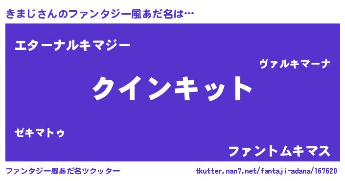 | 男性向けラノベタイトル風あだ名 | 『ノーゲーム・ノーキマジ』 |