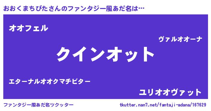 | 男性向けラノベタイトル風あだ名 | 『おまえをオタクにしてやるから、俺をおおくまちびたにしてくれ! 』 |