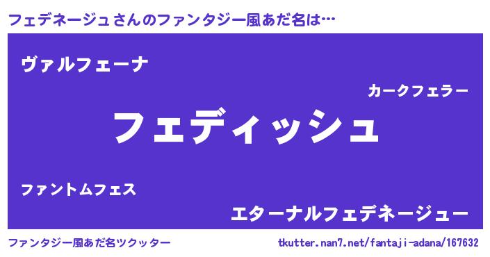 | 意味不明あだ名 | 『永久保存フェデネージュ』 |