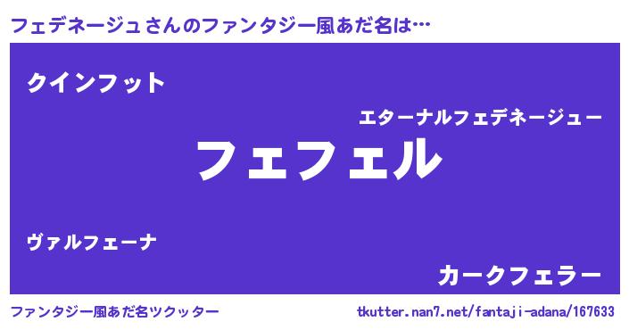 | 男性向けラノベタイトル風あだ名 | 『フェデネージュの憂鬱』 |