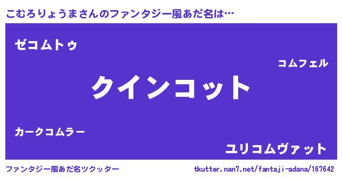 | 男性向けラノベタイトル風あだ名 | 『ノーゲーム・ノーコムロリョウマ』 |