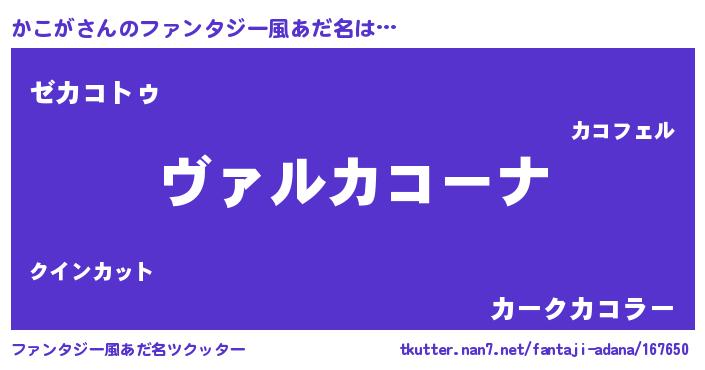 | 男性向けラノベタイトル風あだ名 | 『この素晴らしい世界にかこがを!』 |
