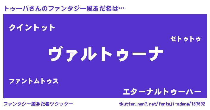 | 意味不明あだ名 | 『住所不定無職トゥーハ(47歳)』 |