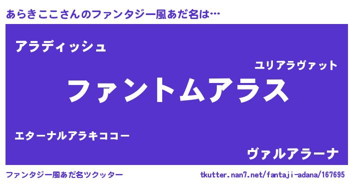 | ヘコむあだ名 | 『あらを』『あらきここ(苦笑)』 |