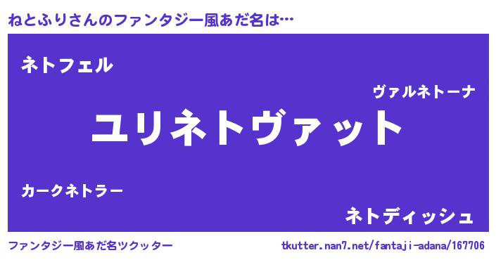 | 意味不明あだ名 | 『ヨモギ科ねとふり属』 |
