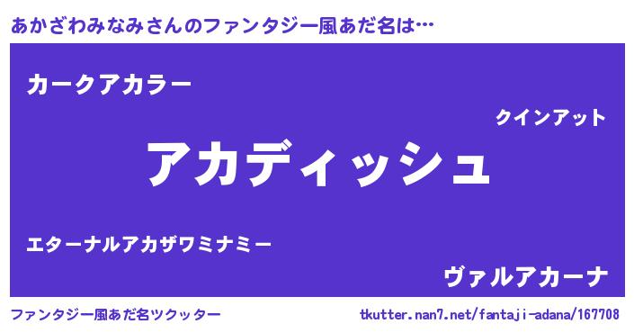 | 意味不明あだ名 | 『永久保存あかざわみなみ』 |