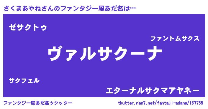 | 恥ずかしいあだ名 | 『サクマアヤネデラックス』『さくっちょ』 |