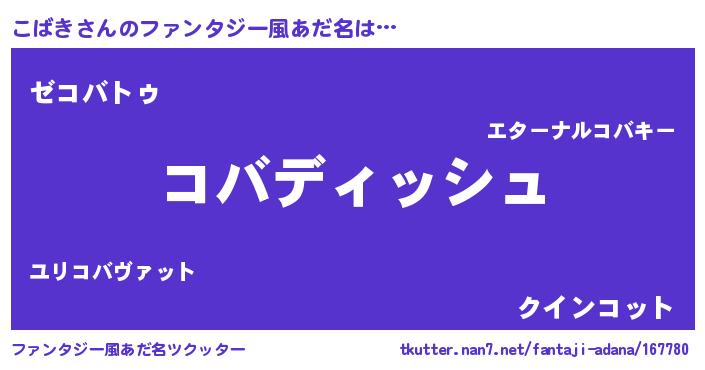 | 意味不明あだ名 | 『永久保存こばき』『自称こばき』 |