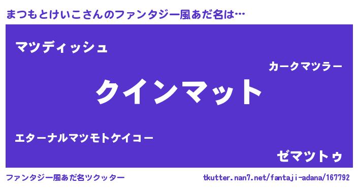 | 男性向けラノベタイトル風あだ名 | 『まつもとけいこに滅ぼされるだけの簡単なお仕事です』 |
