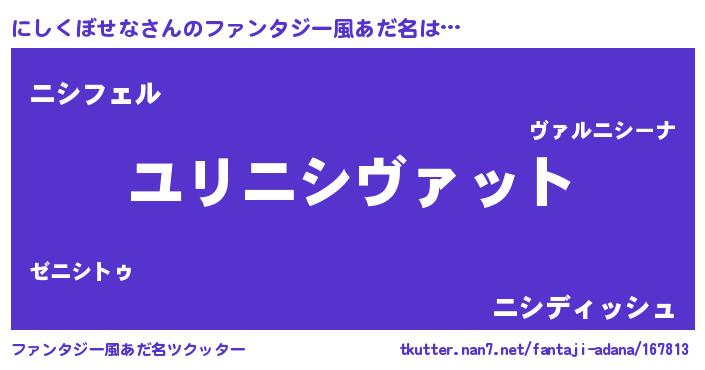 | 胡散臭い通販商品みたいなあだ名 | 『必ず成功する霊験あらたかなお札…その名も「にしくぼせな」』 |