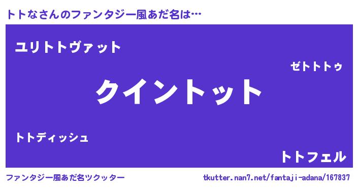 | 意味不明あだ名 | 『眠気覚ましガムトトな味』『自称トトな』 |