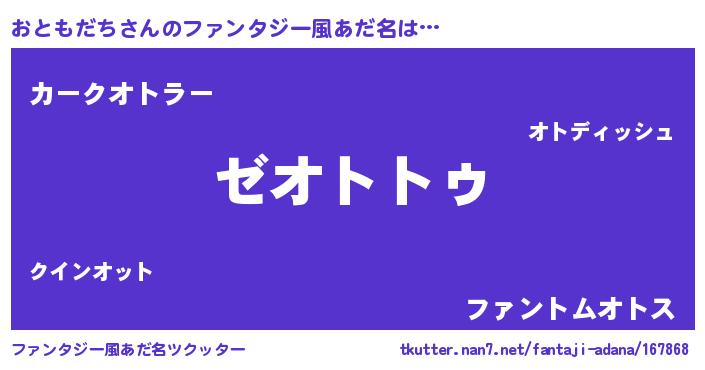 | ヒーロー風カッコイイあだ名 | 『究極戦士オトモダチ』『黄金騎士オト』 |