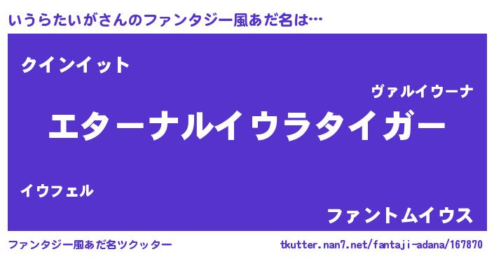 | 意味不明あだ名 | 『いうらたいがフォーエバー』 |