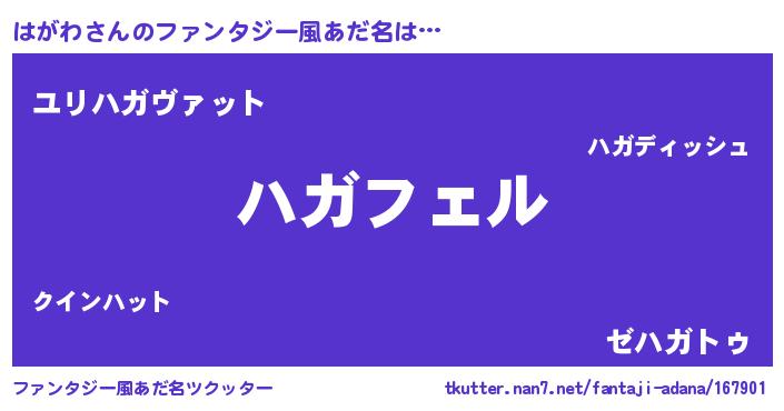| ヒーロー風カッコイイあだ名 | 『スーパーハガワ』『究極戦士ハガワ』 |