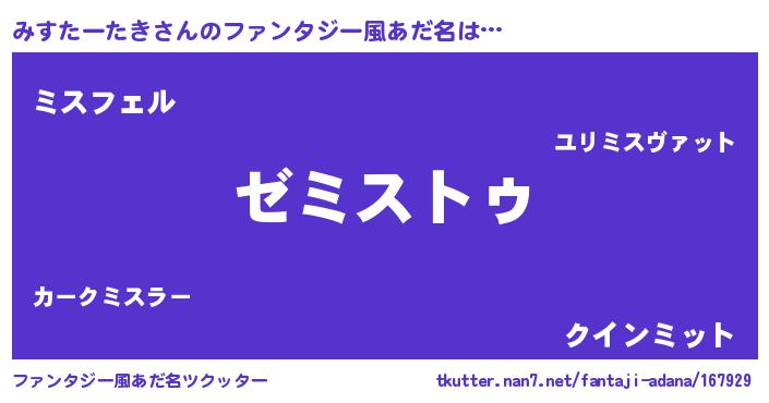 | 意味不明あだ名 | 『自称みすたーたき』 |